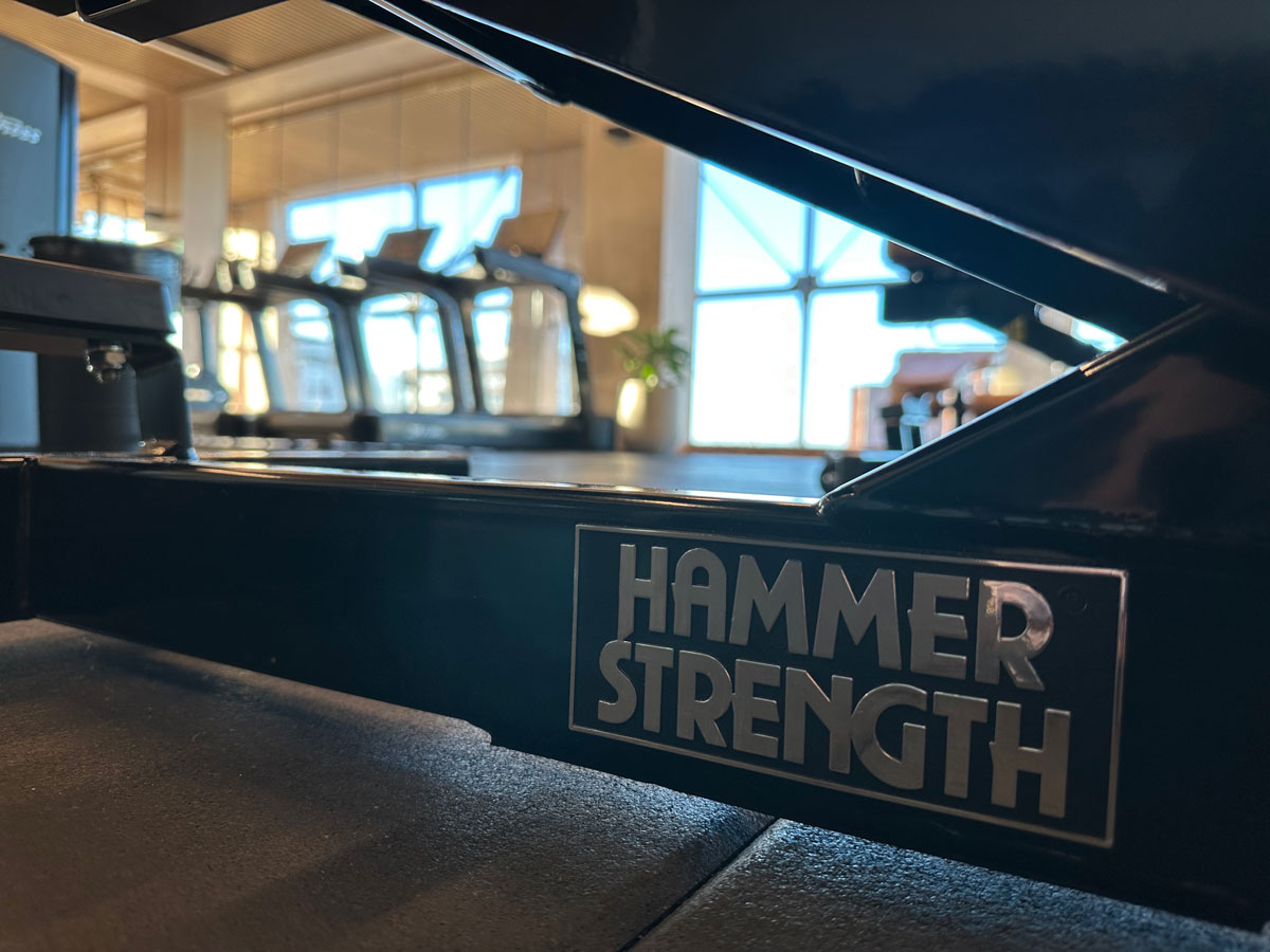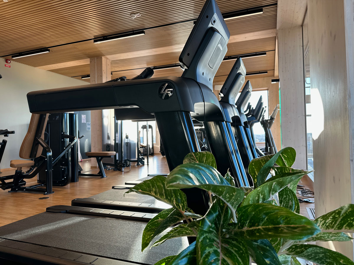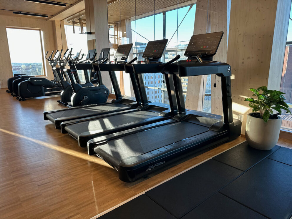 Anders Kumlin på Fitness Brands menar att gymmet passar som hand i handske i den eleganta byggnaden. Kombinationen av gymutrustning från Life Fitness / Hammer Strength, de vackra limträbalkarna och imponerande glaspartierna skapar en wow-känsla – något utöver det vanliga.
